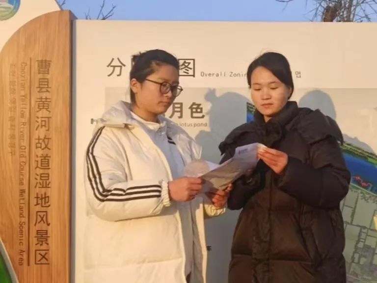 活动伊始,志愿者们首先来到黄河故道国家湿地展览馆,倾听讲解员详细介绍展览馆历年来获得的国家级荣誉与认可。在参观过程中,志愿者们结合周边的宣传牌,深入浅出地讲解了湿地的生态功能、生物多样性以及保护湿地的重要意义,呼吁同学们和周边居民积极参与到湿地保护行动中来。同学们纷纷表示深受触动,愿意在活动结束后向更多人传播湿地保护知识。随后,志愿者们沿着湿地栈道漫步考察,人物解读牌详细介绍当地的历史文化名人,展现出深厚的地域人文底蕴。活动最后,展览馆负责人特别鼓励大学生们发挥专业知识优势,积极投身到各类自然资源保护的宣传与实践中,共同凝聚起全社会的保护合力,同学们也都积极响应,一定会在今后的生活中献出自己的一份力量。