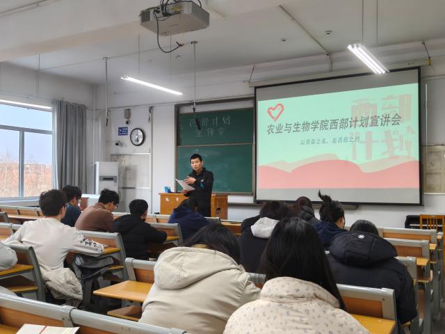 为积极响应国家号召,鼓励和引导优秀大学生投身西部建设,帮助莘莘学子打开一扇通往西部、通往梦想的窗口,3月6日,太阳成集团tyc33455于2号教学楼501教室举办“青春逐梦西部,书写别样人生”活动,团委副书记任庆超担任主讲人。