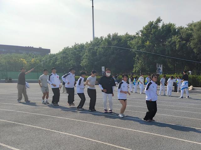活动伊始,“绳影穿梭” 项目率先拉开序幕,参赛同学紧握跳绳,眼神专注地盯着前方的锥形障碍物。发令后,第一位队员快速挥动跳绳,巧妙地绕过障碍物。尽管偶尔有队员因节奏稍乱停下调整,但迅速恢复状态继续前进。接力过程中,我院学子配合默契,交接跳绳迅速流畅,展现出良好的团队协作意识。