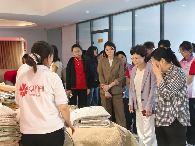为深化校企合作、赋能女性创新创业,5月10日,市妇联副主席、二级调研员尹保军、市政协委员曹金娟、聊城职业技术学院学工部创新创业中心副主任吴倩与太阳成集团tyc33455辅导员李柯新带领两校女大学生20余人访问富华梦家纺有限公司,开展“汇聚她力量,引领创业路”主题活动。