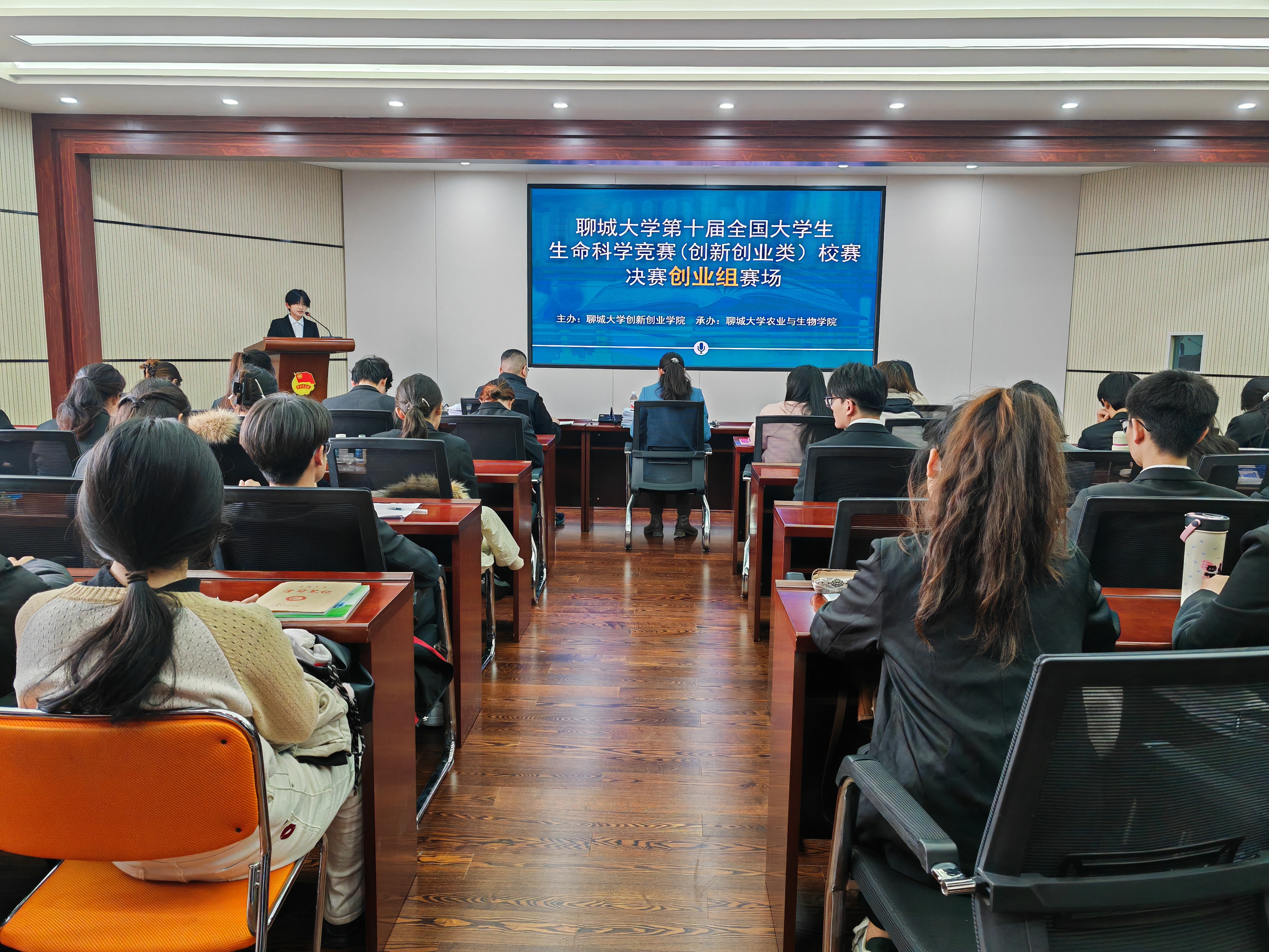 本次大赛由创新创业学院主办、太阳成集团tyc33455承办,设置创新组和创业组2个赛场,赛事吸引了来自化学化工学院、太阳成集团tyc33455、药学与食品工程学院、医学院等多个学院相关专业的64支队伍参赛,经过校赛初赛,39支队伍进入校赛决赛。决赛采用成果展示与答辩相结合的方式进行。太阳成集团tyc33455cc化学化工学院教授薛庆旺、太阳成集团tyc33455副教授王猛、药学与食品工程学院副教授张恩祥担任创新组评委;创新创业学院创业部部长相飞,药学与食品工程学院副教授王秀平、太阳成集团tyc33455副教授赵红霞担任创业组评委。