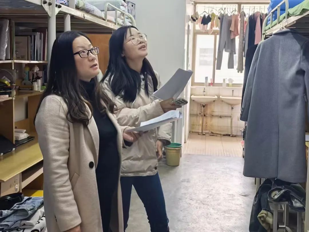 安全检查,筑牢防线。走访过程中,学院辅导员、班主任秉持对学生的高度关怀,深入学生宿舍,详细了解各寝室的基本情况,对学生宿舍的硬件设施、卫生状况、住宿条件、安全隐患等方面进行了重点检查,并提出了具体的整改建议。宿舍走访过程中,老师们着重强调安全是校园生活不可忽视的环节,提醒同学们必须紧绷安全这根弦,时刻保持警惕,共同营造一个安全、和谐的宿舍环境。