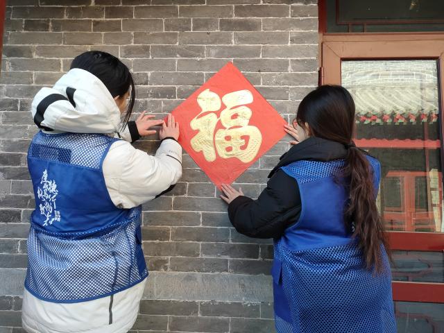 笔墨丹青迎新岁,诗书礼乐庆丰年。活动伊始,志愿者们齐聚一堂,挥毫泼墨。他们铺开大红宣纸,饱蘸笔墨,笔锋游走间,一幅幅寓意吉祥的春联和福字跃然纸上。楷书端庄秀丽,行书飘逸流畅,隶书古朴典雅,每一个字都饱含着对居民们的美好祝福。随后,福字和对联被志愿者们粘贴在门上,在光照之下红与黑的交错更显艺术之美,也彰显了新春佳节到来之际的喜气洋洋。最后,志愿者们决定送福到家,志愿者们将书写好的福字和春联送到需要关爱的困难家庭中,在凛冽的寒冬温暖了人们的心。春节是我国的传统节日。贴春联是传统习俗,春联不仅能表达祝愿、寄托希望,而且饱含了浓浓文化诗意,体现了暖暖中国情。
