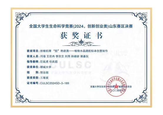 我院刘雨同学在全国大学生生命科学竞赛山东赛区中荣获三等奖,对该获奖同学予以祝贺表彰。