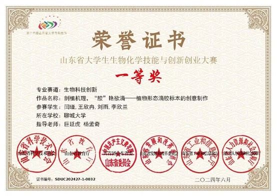 我院刘雨同学在山东省大学生生物化学技能与创新创业大赛中荣获一等奖,对该获奖同学予以祝贺表彰。