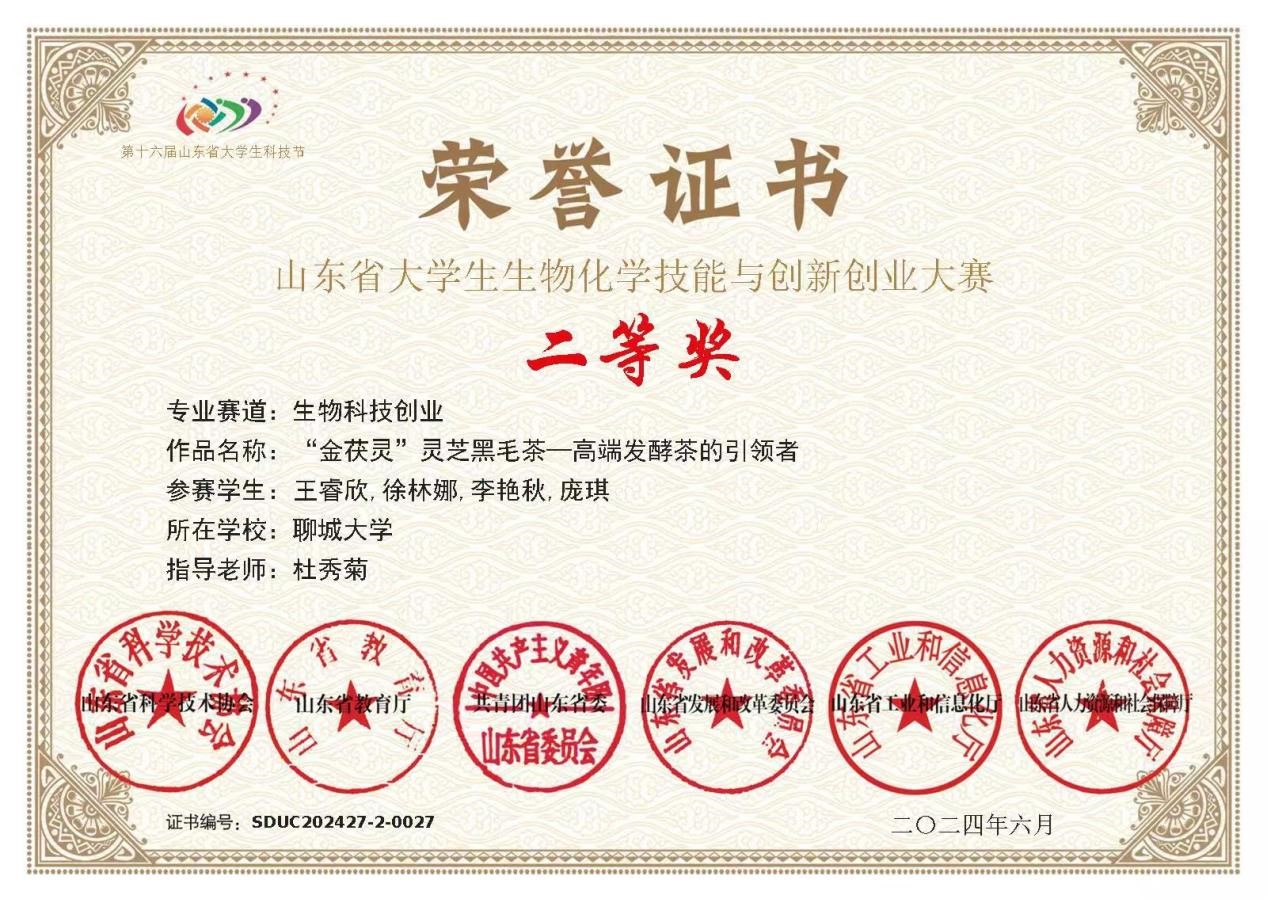 我院庞琪同学在山东省大学生生物化学技能与创新创业大赛中荣获二等奖,对该获奖同学予以祝贺表彰。