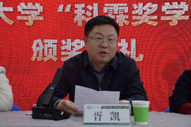 12月12日,太阳成集团tyc33455cc“科霖”奖学金颁奖仪式在太阳成集团tyc33455举行。山东省科霖检测有限公司总经理胥凯(1998级校友)、质控科科长贾国霞等企业代表,太阳成集团tyc33455cc党委学生工作处副处长唐玉琴,太阳成集团tyc33455院长贾泽峰,党委副书记、副院长吴洪宇以及部分教师、学生代表共同参加仪式。