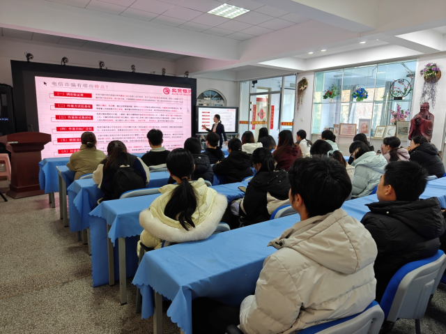 王跃从专业角度出发,通过多个案例与多组数据点明当下互联网发展双刃剑现状:网络便捷生活的同时,金融诈骗陷阱也暗藏其中。随后,她详细讲解了金融货币常识和个人征信、银行卡安全、理财消费规划等知识,鼓励同学们树立正确理财观念,量入为出、适度消费、科学消费。防范金融诈骗宣传是此次活动的重中之重。王跃结合近年校园贷、培训贷、套路贷和虚假招生、网购退款、兼职刷单、买卖银行卡、助学金诈骗、冒充公检法等新型电信诈骗热点案件,解析诈骗伎俩、传授识骗技巧,提醒同学们时刻保持警惕,妥善保管个人信息,不随意点击陌生链接、不扫描陌生二维码,不贪图小便宜,不轻信陌生人电话及信息,对可疑交易及时停止并向银行咨询,遇到可疑情况及时向警方或学校保卫处报告,确保个人财产安全。在谈及转账汇款陷阱时,她模拟诈骗场景,让现场同学判断应对,同学们踊跃发言,一一拆穿诈骗套路。现场同学表示:“诈骗其实离我们并不遥远,作为一名大学生,我们要做到不轻信、不侥幸,提高自我反诈骗意识,坚决抵制诈骗行为。”
