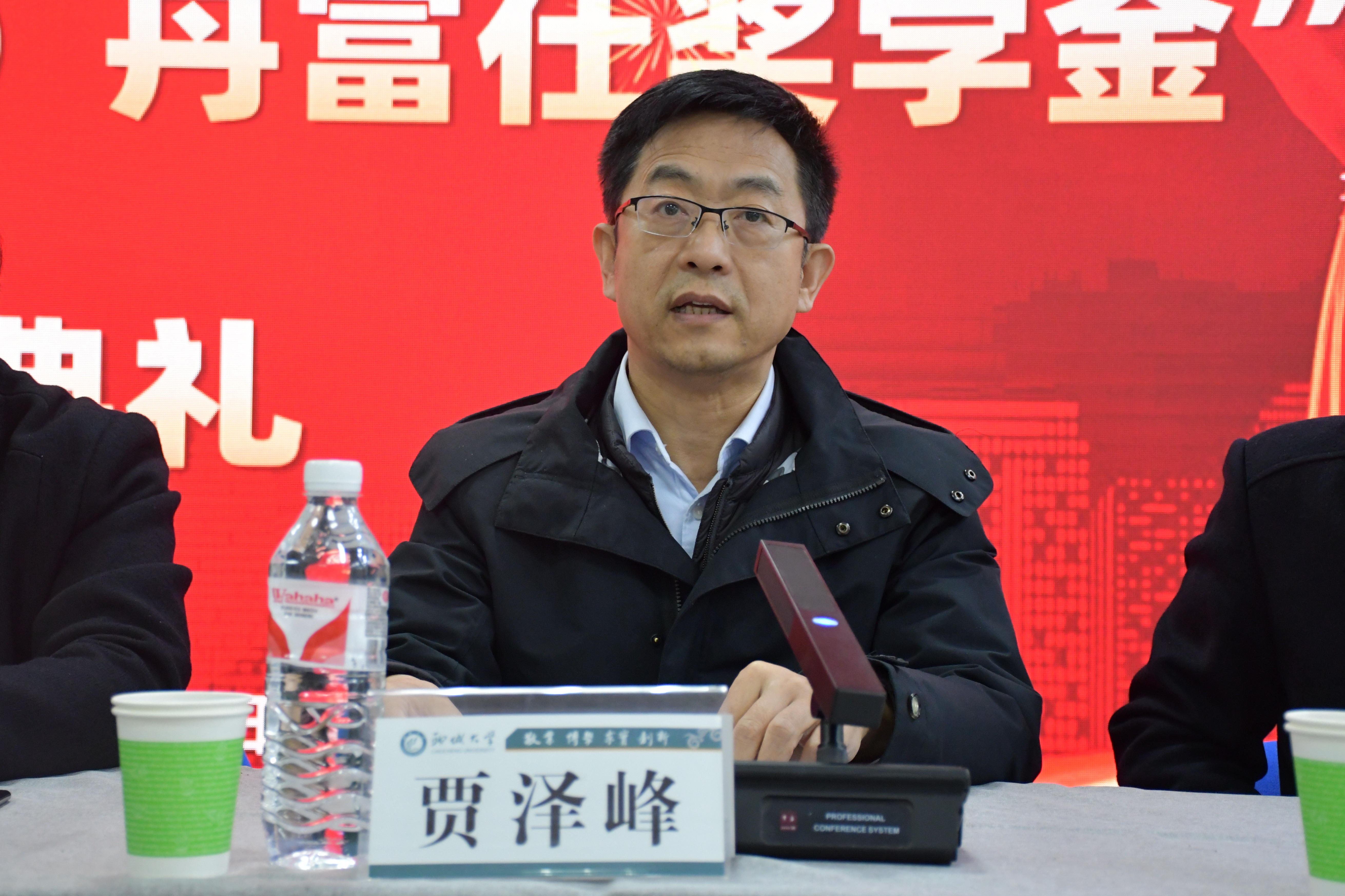 贾泽峰向企业对学院人才培养的大力支持表示敬意,并对同学们提出三点希望和要求:一是要涵育理想、志存高远,肩负时代使命;二是要锤炼本领、脚踏实地,争做时代新人;三是要勇于创新、躬身实践,扎根时代沃土,以脚踏实地的决心在行业领域深耕不辍,以奋进敢为的锐意与祖国发展同向同行。